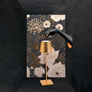 OBCHOD Svietidlá LED osvetlenia LED stolné lampy Ailati Stolná LED lampa Poldina s dekorom prenosná zlatá Cena vrátane DPH: 225.90 € Do obchodu SVETLA.sk