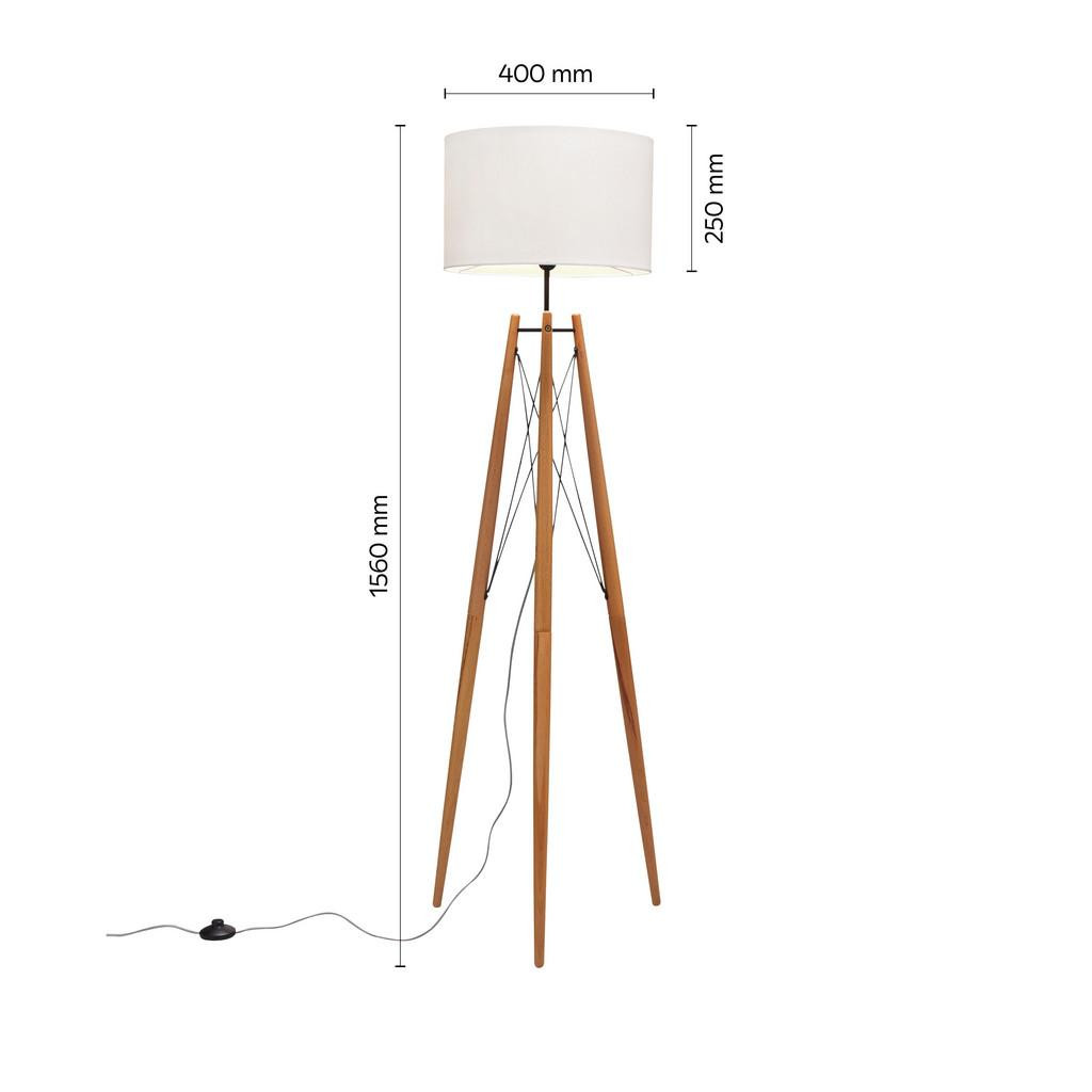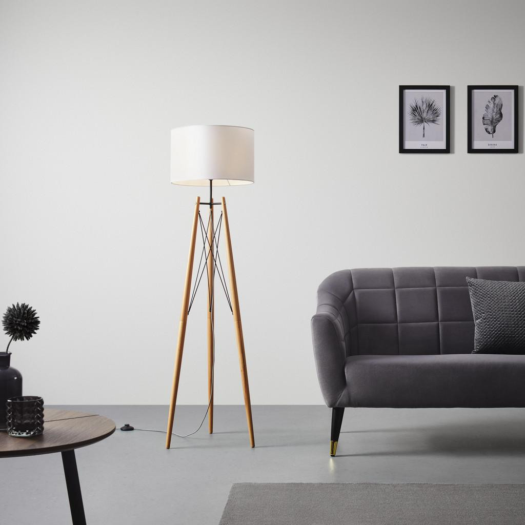 Do obchodu MOBELIXTento výrobok je k dispozícii iba ONLINE. Štýlová stojaca lampa s nádychom v štýle Skandi zaplní váš domov útulným osvetlením. Stojacia lampa s 3 nohami v vyhotovenými z dreva je vysoká asi 156 cm a tienidlo z bielej textílie má priemer asi 40 cm Pre túto lampu je určená 1 žiarovka E27 (trieda EEZ A ++ až E) s maximálnym výkonom 60 wattov. Príslušné žiarovky nájdete v našom obchode. Upozornenie: Tento produkt nie je vystavený v kamenných pobočkách, je možné ho získať cez e-shop alebo na objednávku v našich predajniach.
