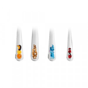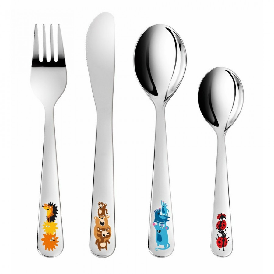 Detský príbor BAMBINI veselé zvieratká od Tescomy, sada 4 ks. Jedálenský príbor pre detské stolovanie, vhodný pre deti od 3 rokov. Vyrobené z prvotriednej nehrdzavejúcej ocele, vhodné do umývačky riadu.